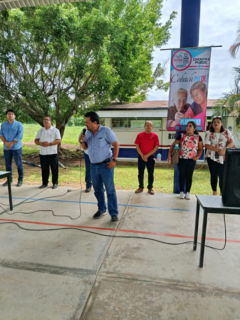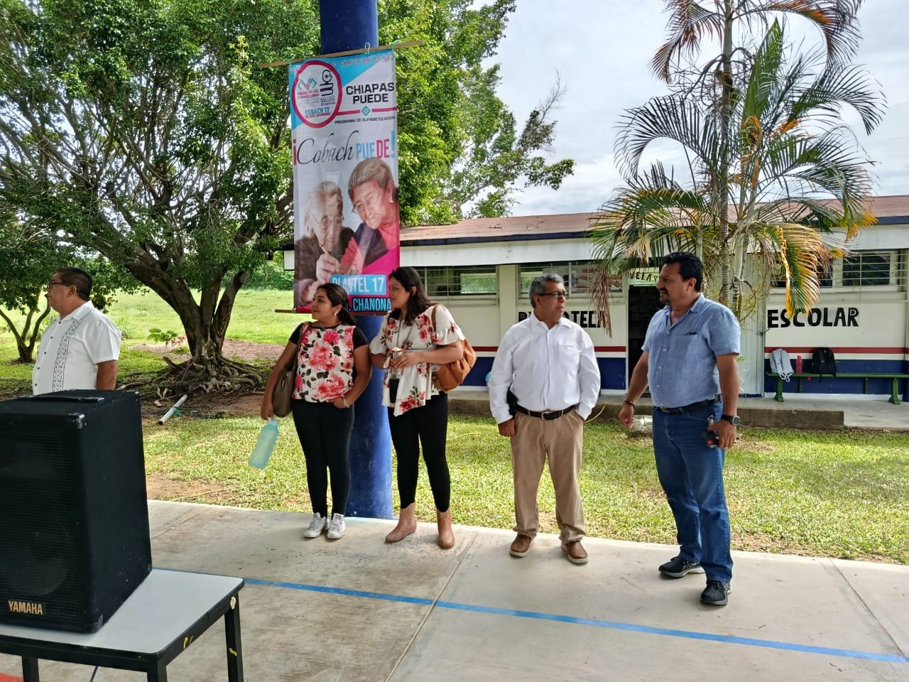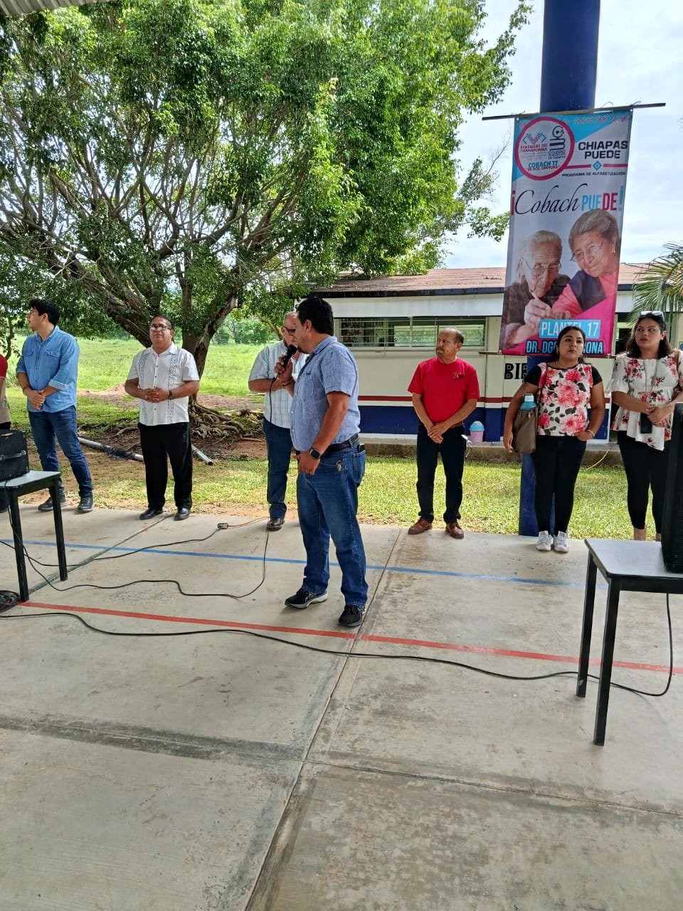 El Plantel 17 Domingo Chanona, del Colegio de Bachilleres de Chiapas, ubicado en el municipio de Villaflores, recibió recientemente la visita del Delegado de Gobierno de la SEP en el Municipio de Villaflores, así como una representante de la Delegación de ICHEJA del municipio de Villaflores; Directores del plantel 44 Villaflores y 123 Cuauhtémoc”, con el propósito de realizar actividades de La Clase Muestra de los círculos de estudio implementados en el marco de los programas de alfabetización “Chiapas Puede”.